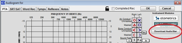- From the PTA, SRT/SAT/SIN, or Word Rec tab of a patient record in AudBase, click the “Download AudioStar Button”